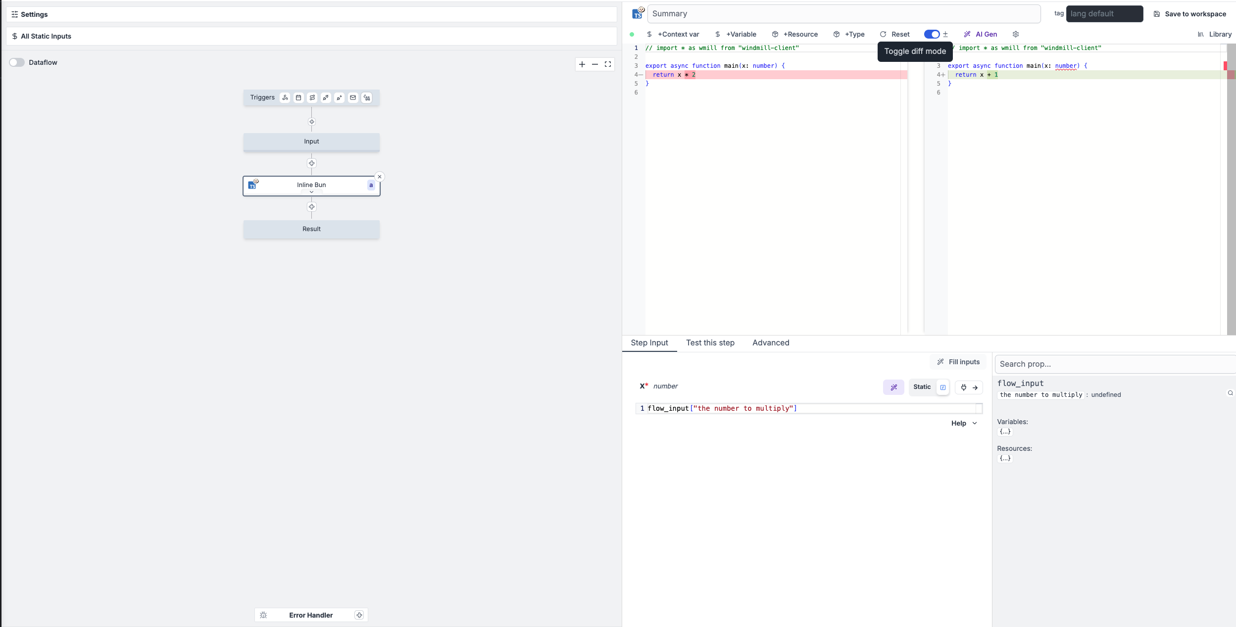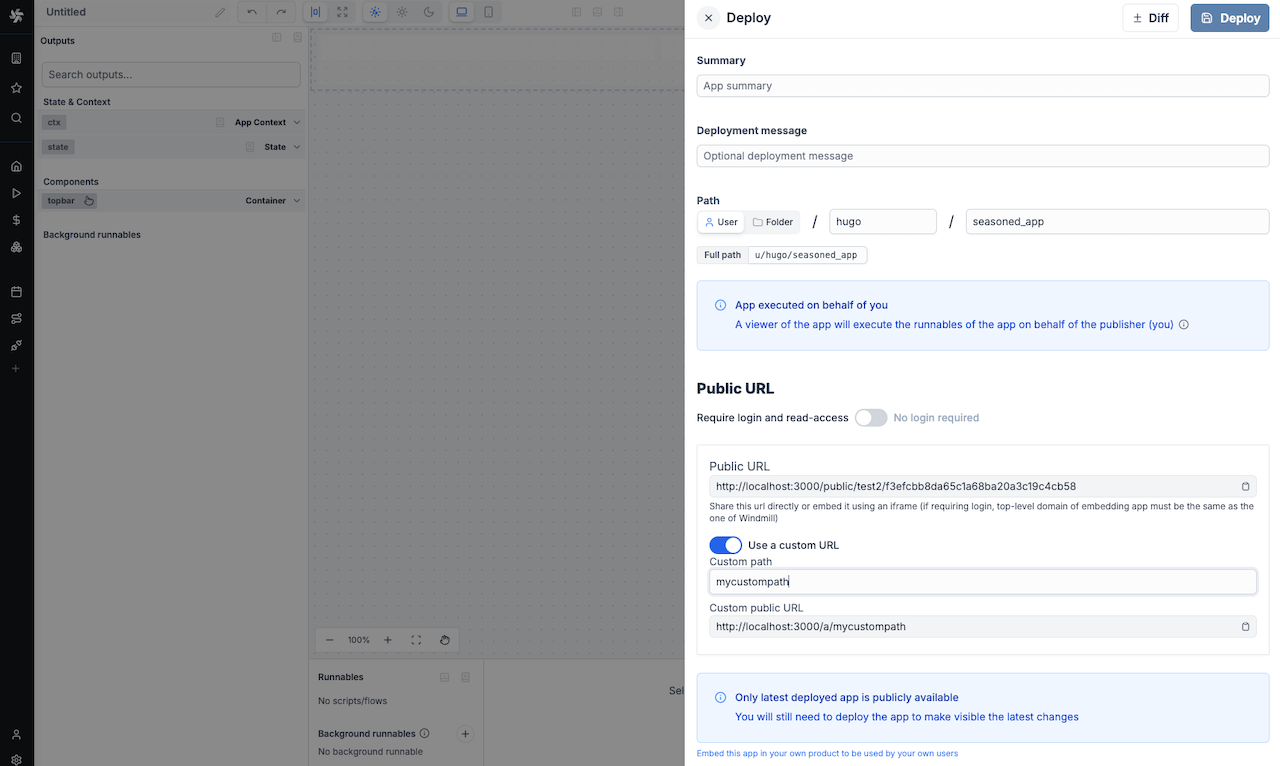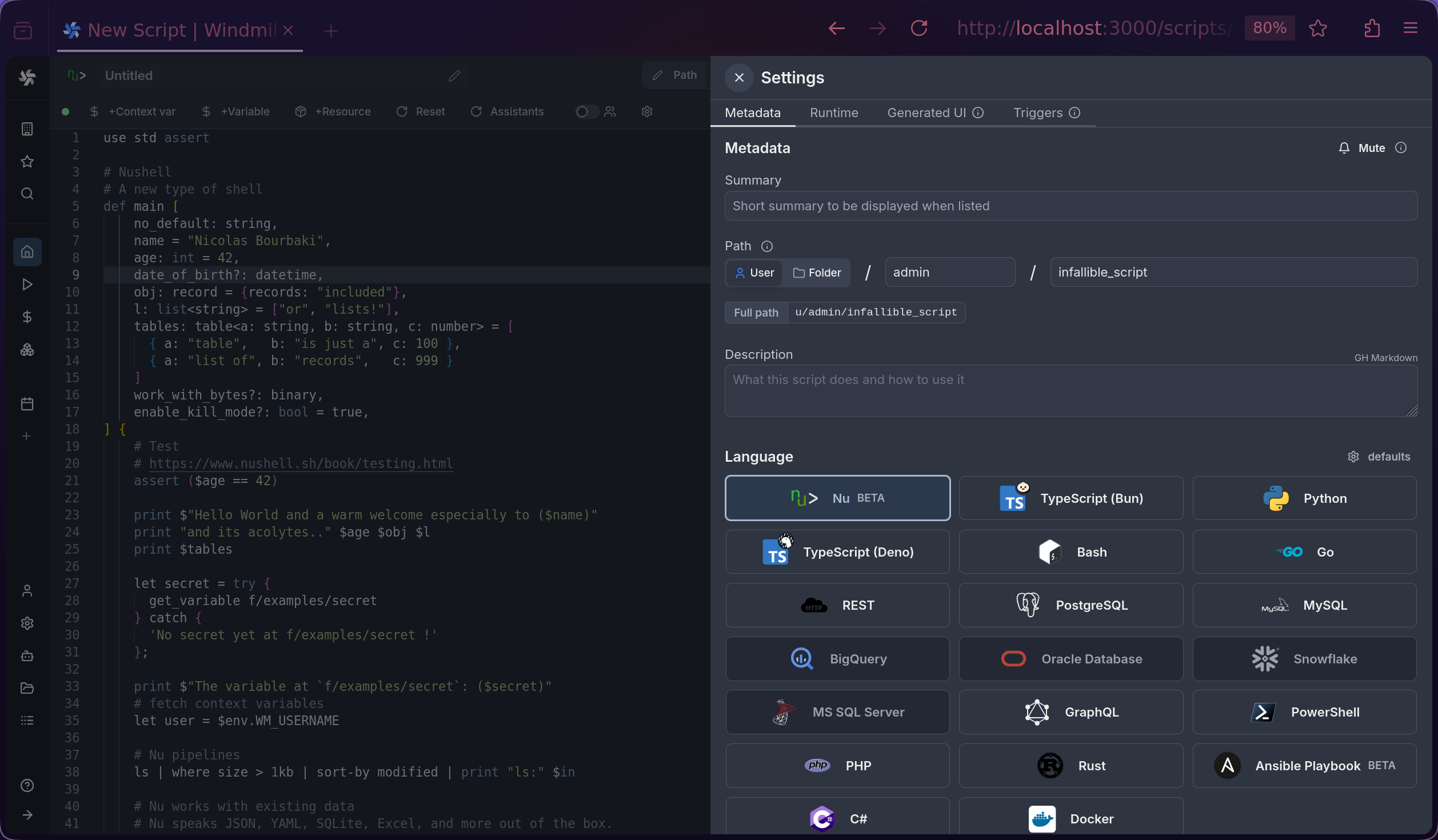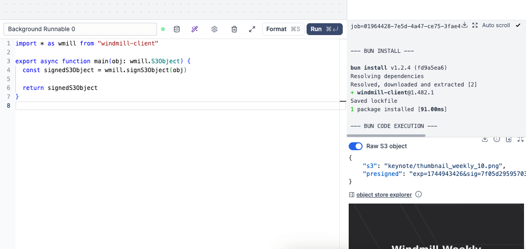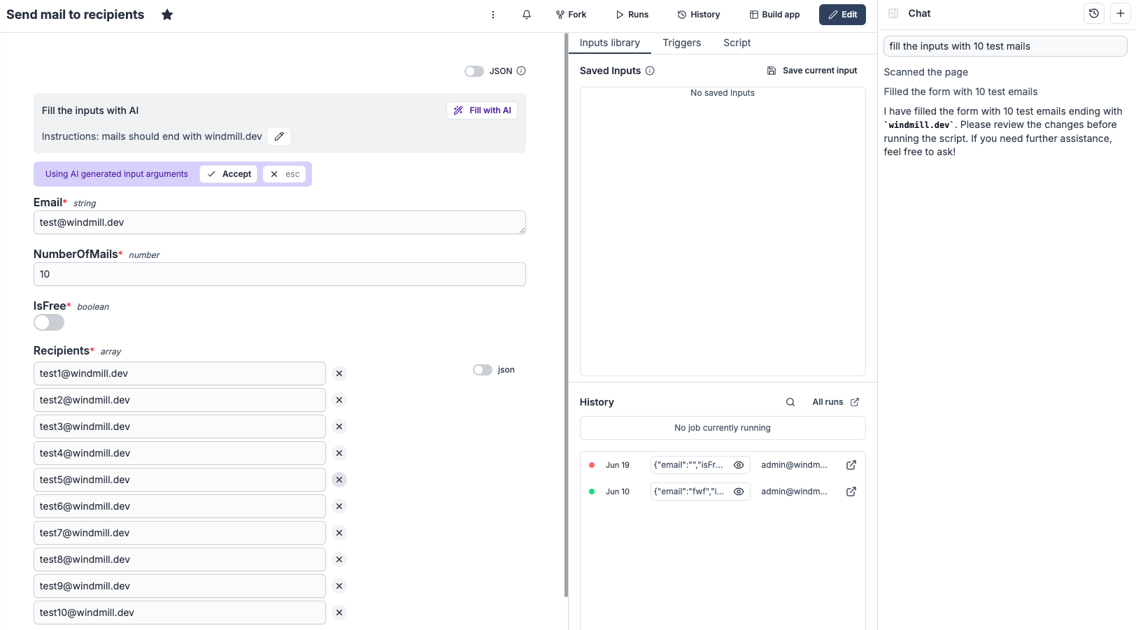 - Integrated with Windmill backend flow/script capabilities