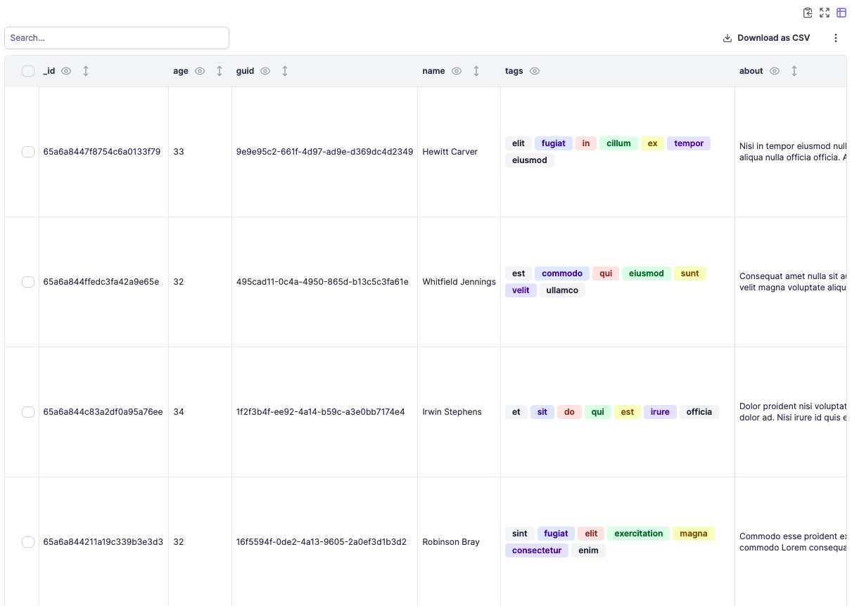 - Download as CSV and JSON.